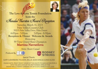 ANNALEE THURSTON AWARD RECEPTION SATURDAY, MARCH 11, 2023 BENEFITTING LOVE & LOVE TENNIS FOUNDATION