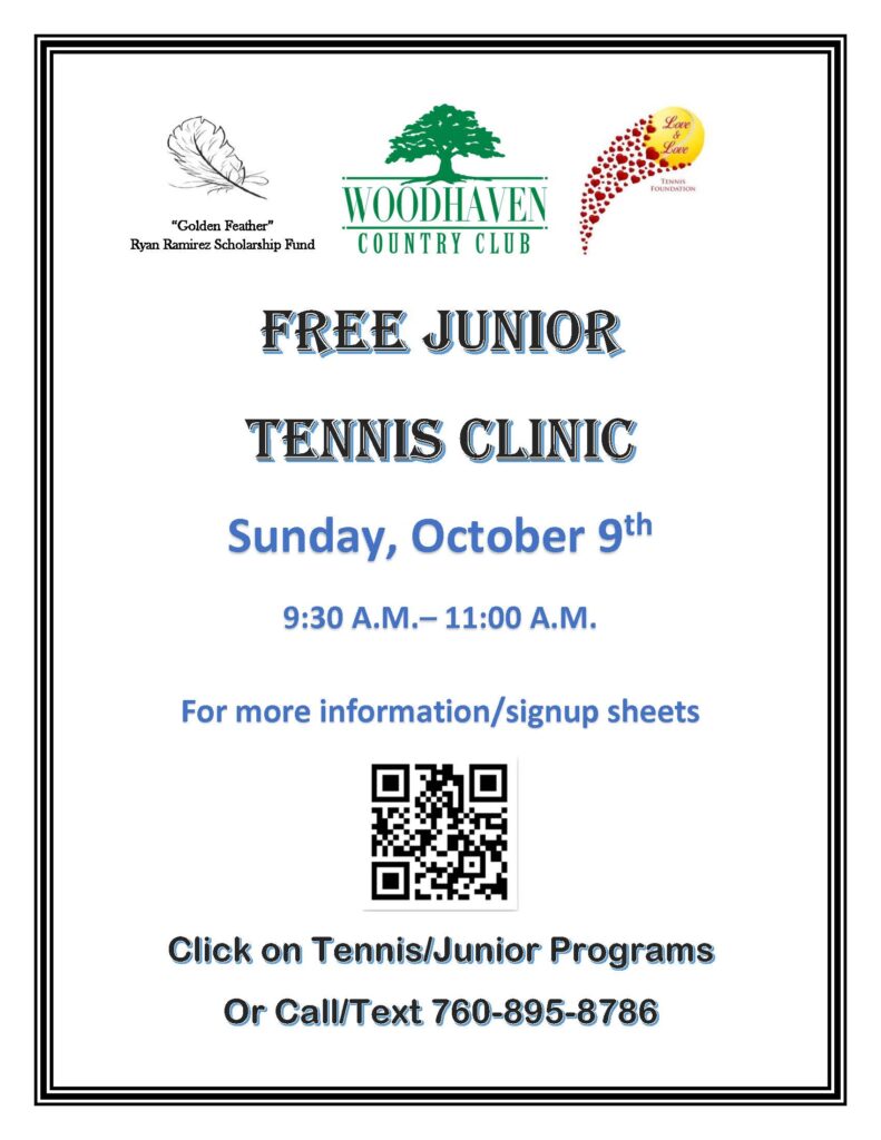 WOODHAVEN C.C. FREE TENNIS CLINIC OCTOBER 9, 2022