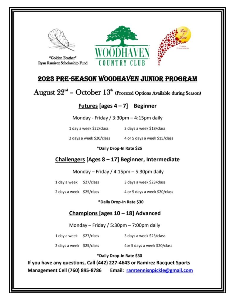 The Love & Love Tennis Foundation is also sponsors of the junior tennis clinics at Woodhaven Country Club.